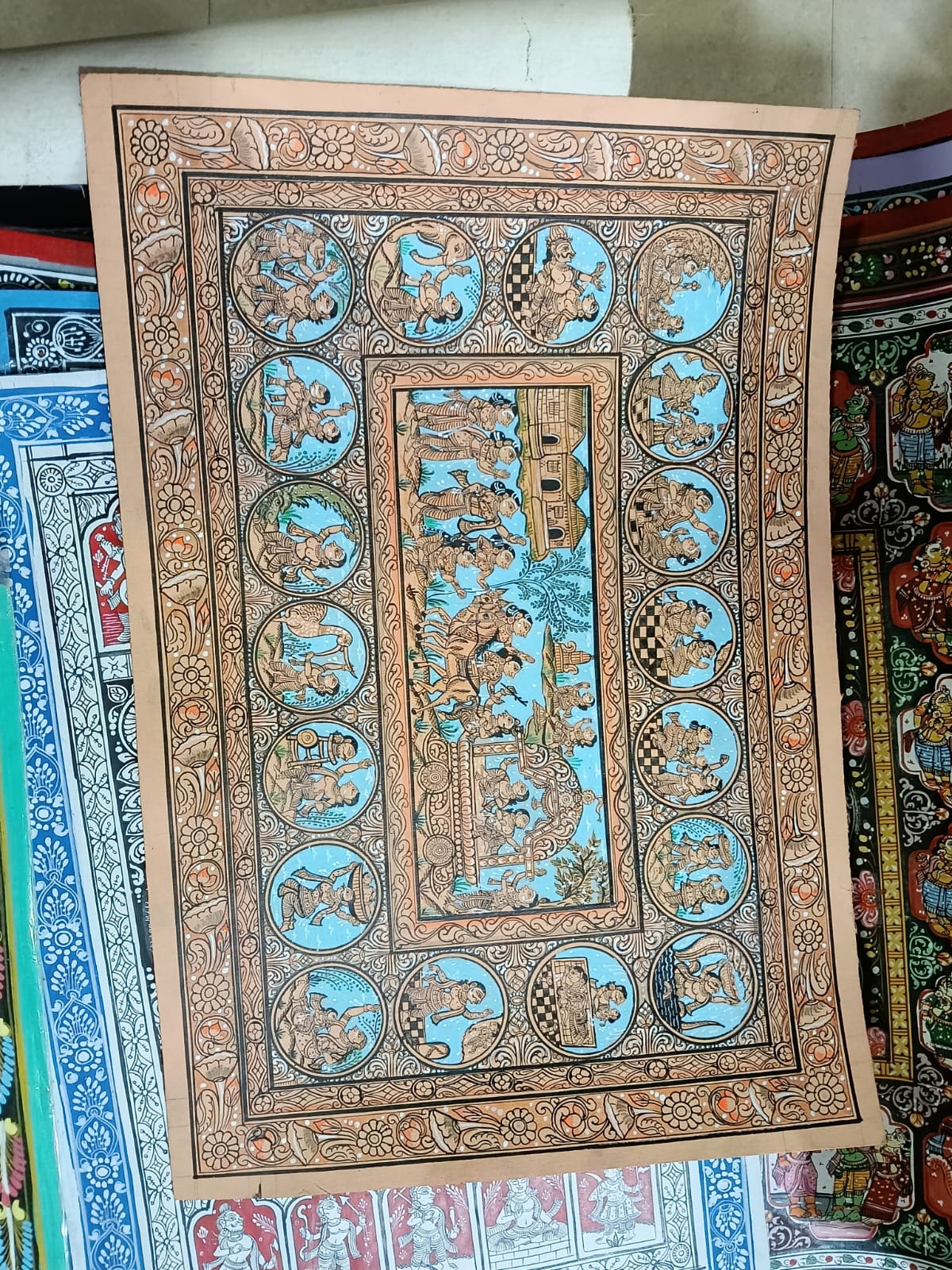 Traditional scroll paintings from Odisha depicting mythological narratives